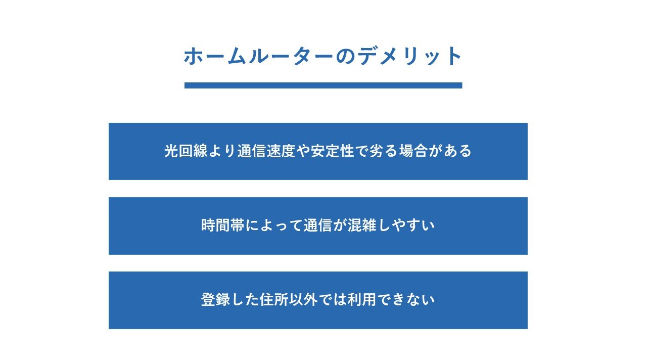 手軽で便利なホームルーターですが、メリットばかりではありません。