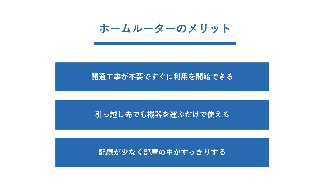 一方、とにかく手間をかけず、すぐにでもインターネットを使い始めたいという方には、ホームルーターが圧倒的におすすめです。