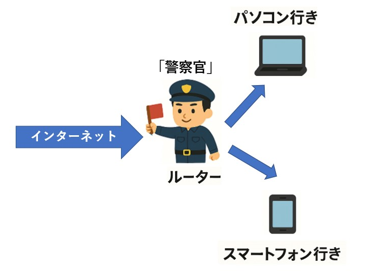 一方、ルーターの役割は、家の中のネットワークを円滑に保つ「交通整理の警察官」に例えることができます。