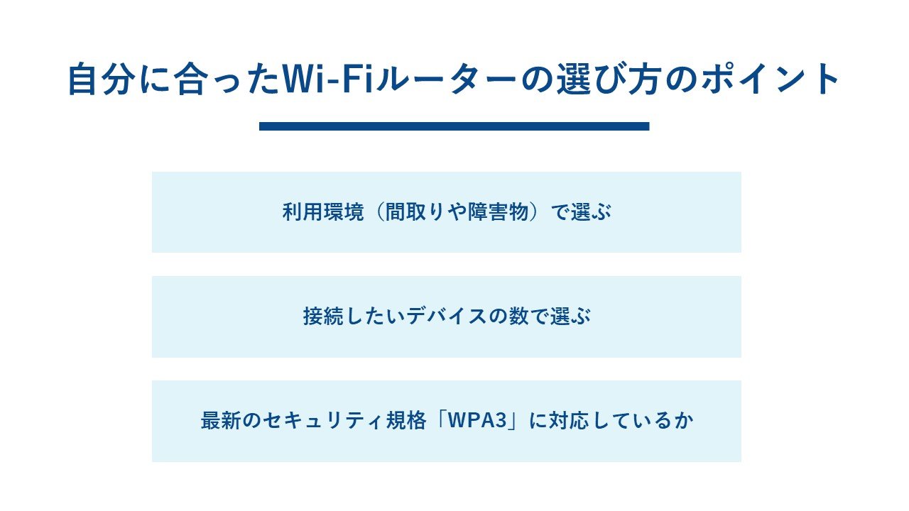 最後に、ここまでの情報を踏まえて、ご自身に最適なWi-Fiルーターを選ぶための3つのポイントをご紹介します。