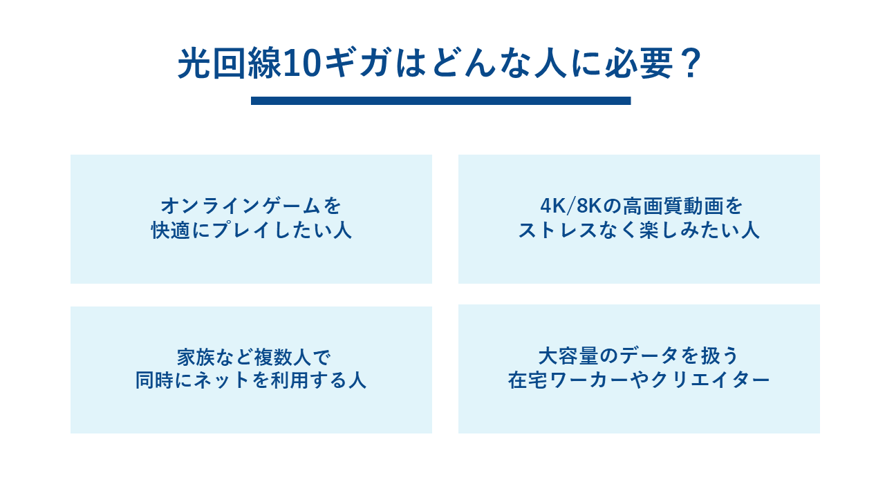 メリットとデメリットをふまえた上で、光回線10ギガは具体的にどのような人におすすめなのでしょうか。ここでは、10ギガプランへの乗り換えを検討すべき4つのタイプを紹介します。