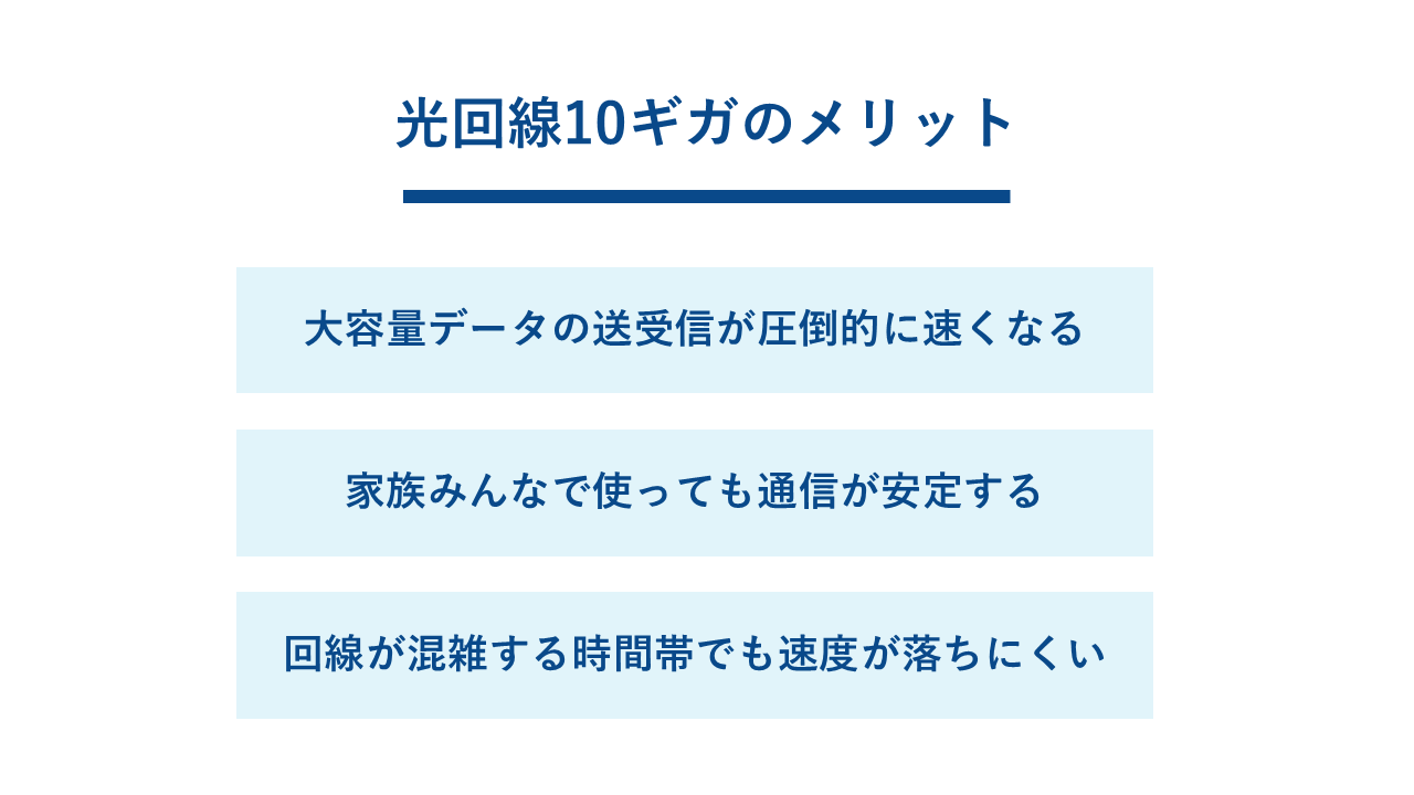 月額料金が高くなるにもかかわらず、光回線10ギガを選ぶ人が増えているのはなぜでしょうか。ここからは、10ギガプランがもたらす3つの大きなメリットについて解説します。