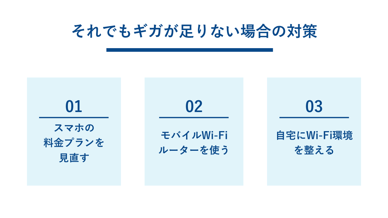 これまで紹介した節約術を試しても、どうしても毎月のデータ通信量が足りなくなってしまう場合は、契約内容や通信環境そのものを見直す時期かもしれません。ここでは、より根本的な解決策を3つ提案します。