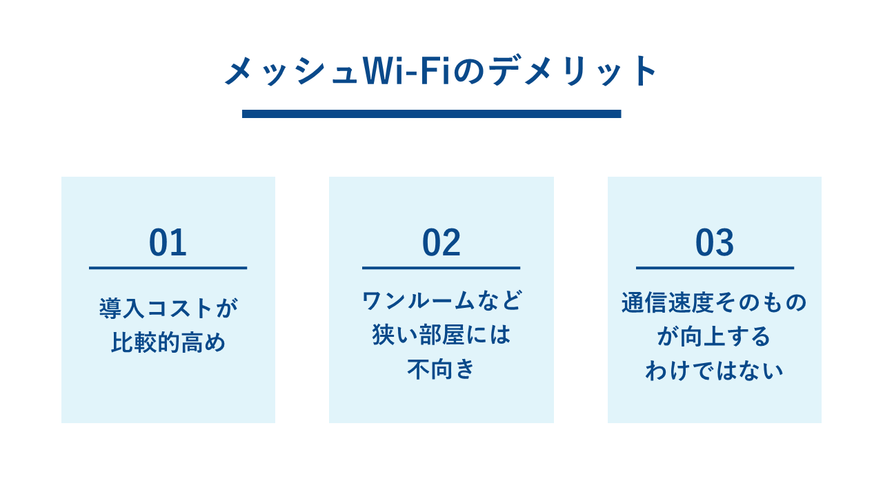 多くのメリットがあるメッシュWi-Fiですが、導入を検討する際にはデメリットも理解しておくことが重要です。