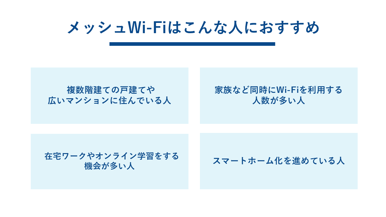メリットとデメリットを踏まえた上で、メッシュWi-Fiの導入が特に効果的なのは、どのような環境や使い方をしている人なのでしょうか。