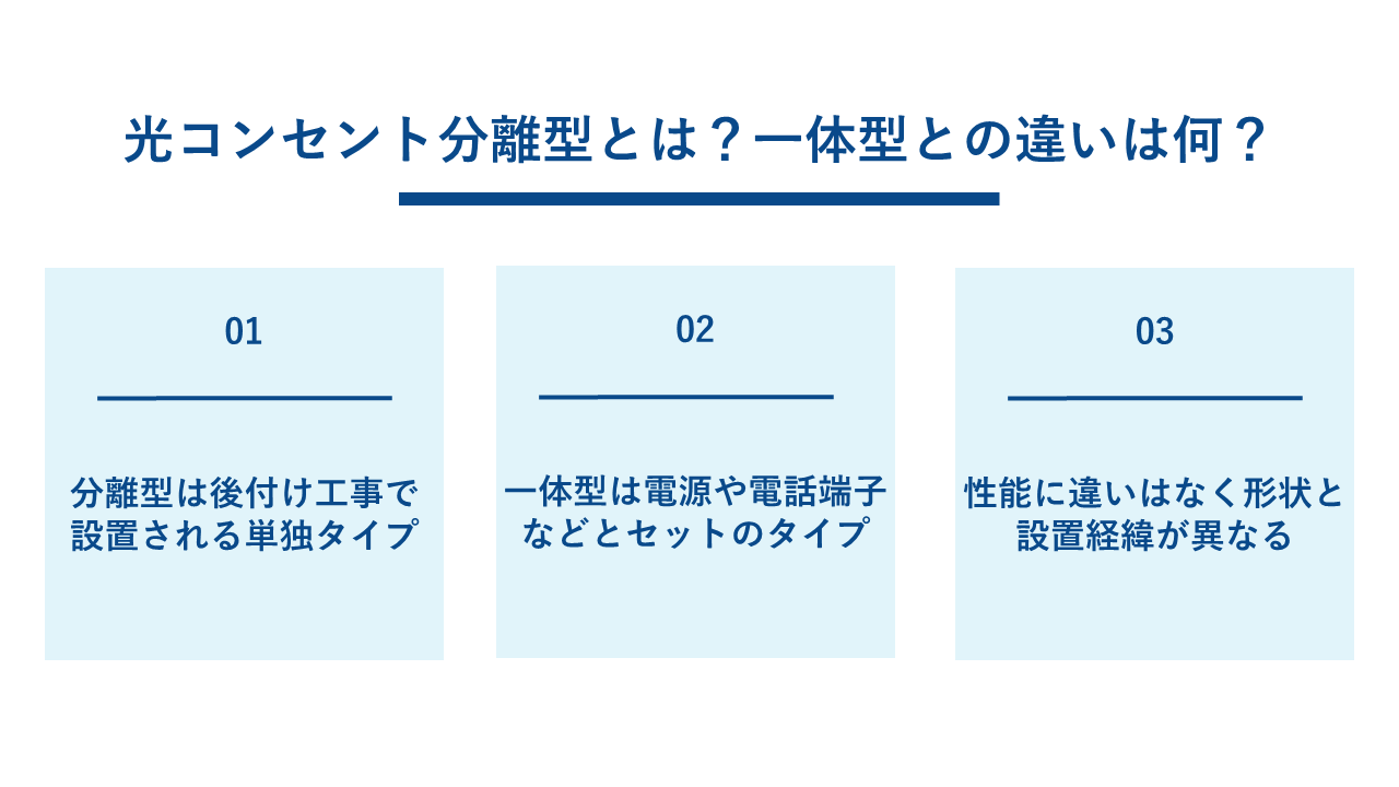 この光コンセントには、大きく分けて「分離型」と「一体型」の2種類が存在します。