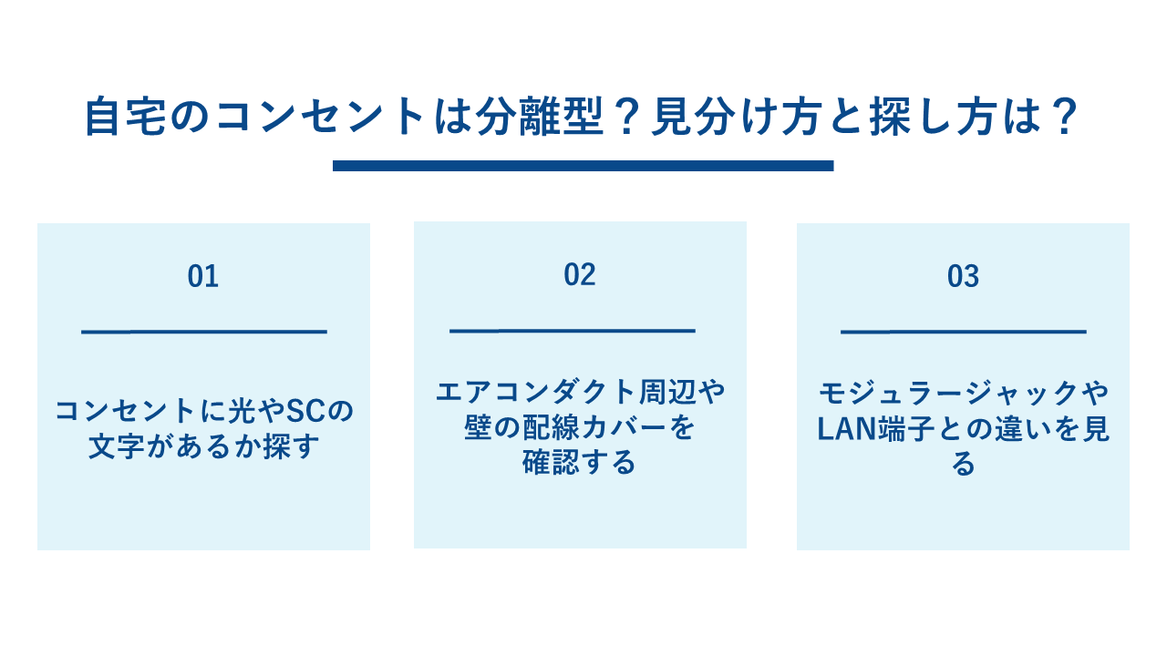 特に「分離型」と呼ばれるタイプは、通常のコンセントとは見た目が異なるため、判断に迷うことがよくあります。もし自宅に光コンセントが設置されていれば、面倒な立ち会い工事をスキップして、すぐに快適なインターネット環境が手に入るかもしれません。