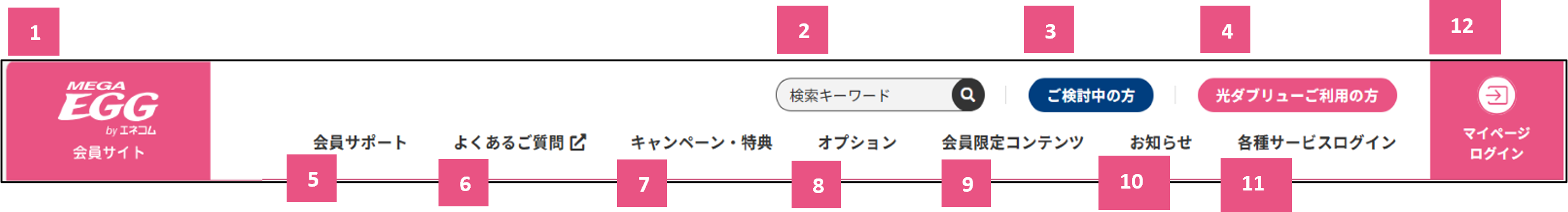 メガ・エッグ 光ダブリューを契約しているお客さま向けのサポートページに移動します。